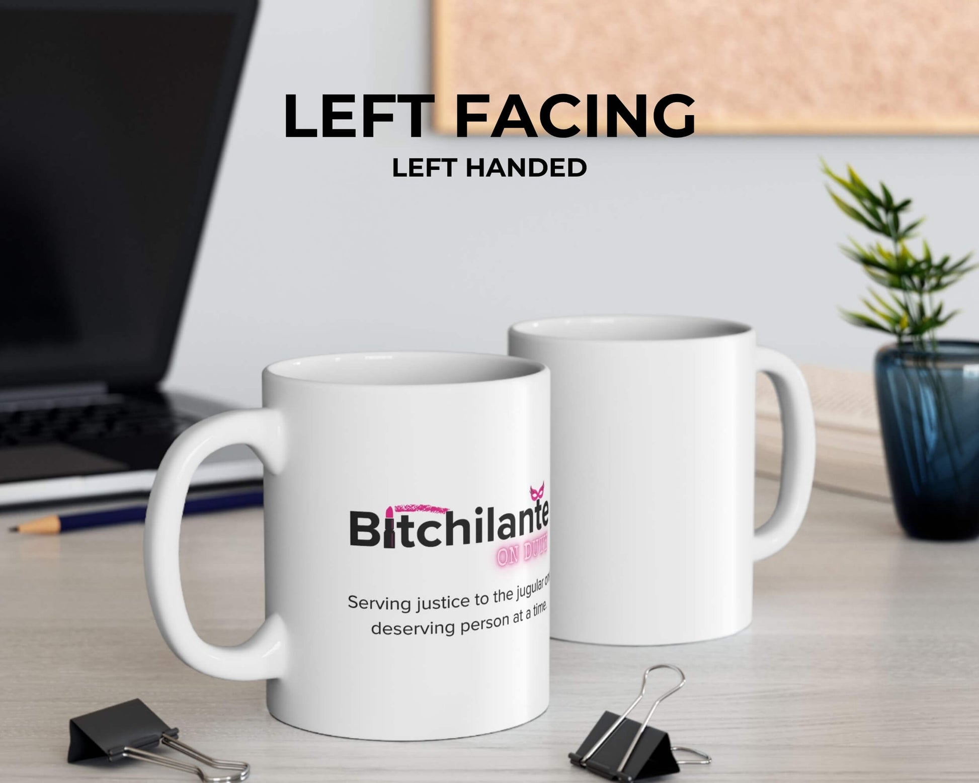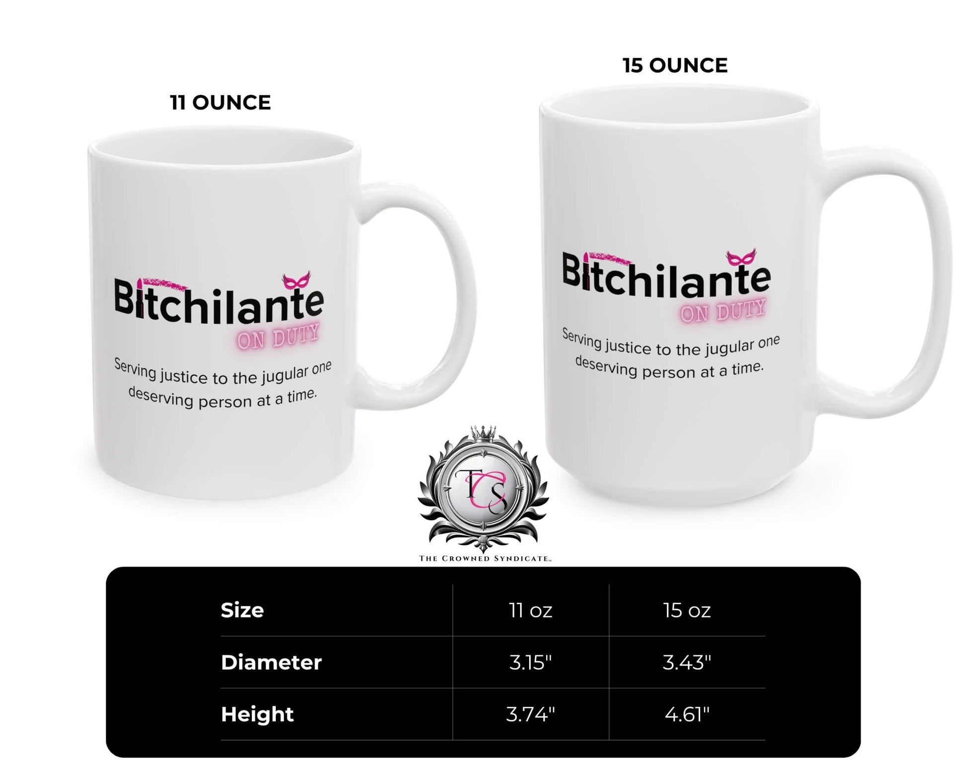Vigilante Vibes: Branded with Bitchilante: On Duty, because every rebel needs an official emblem (and a hot drink).