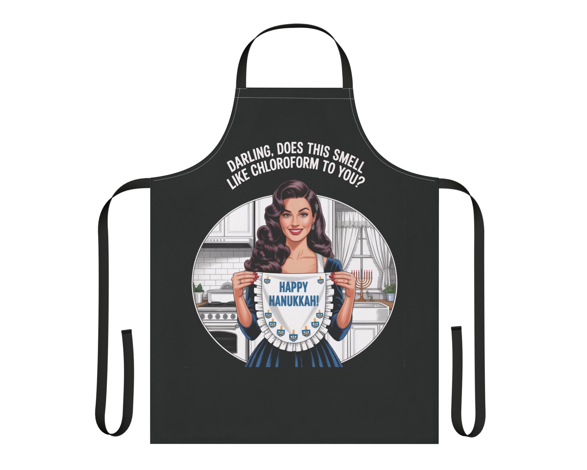Retro Pin-Up • Hanukkah Humor • Sweet With Snark • Holiday Hostess Gift • Black or White Apron