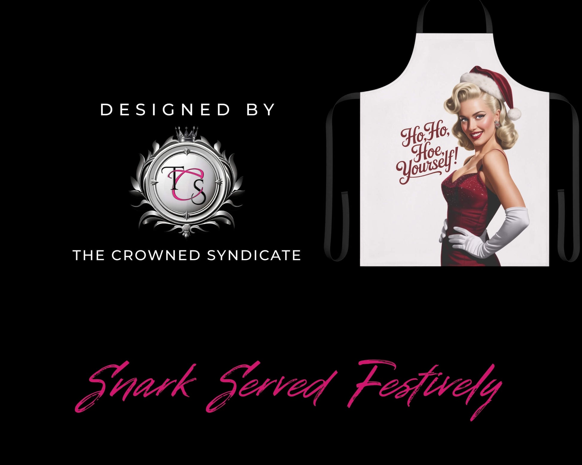 Sugar on the outside, sarcasm on the inside. The Ho Ho Hoe Yourself Retro Pin-Up Apron in white turns your kitchen into a holiday stage for sass and sparkle.