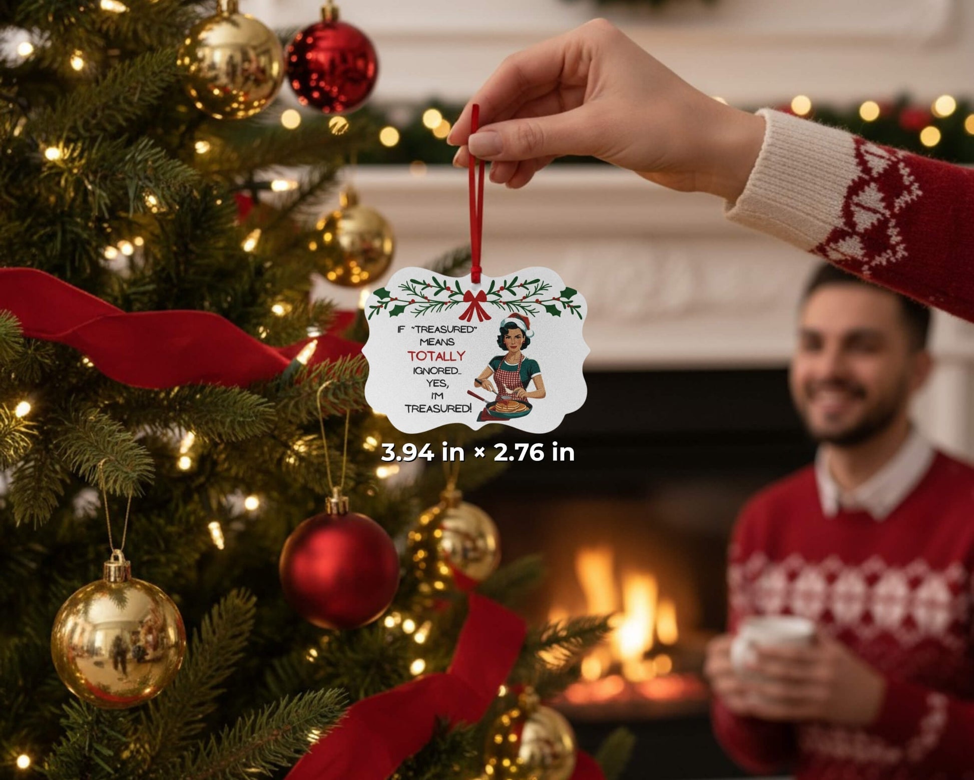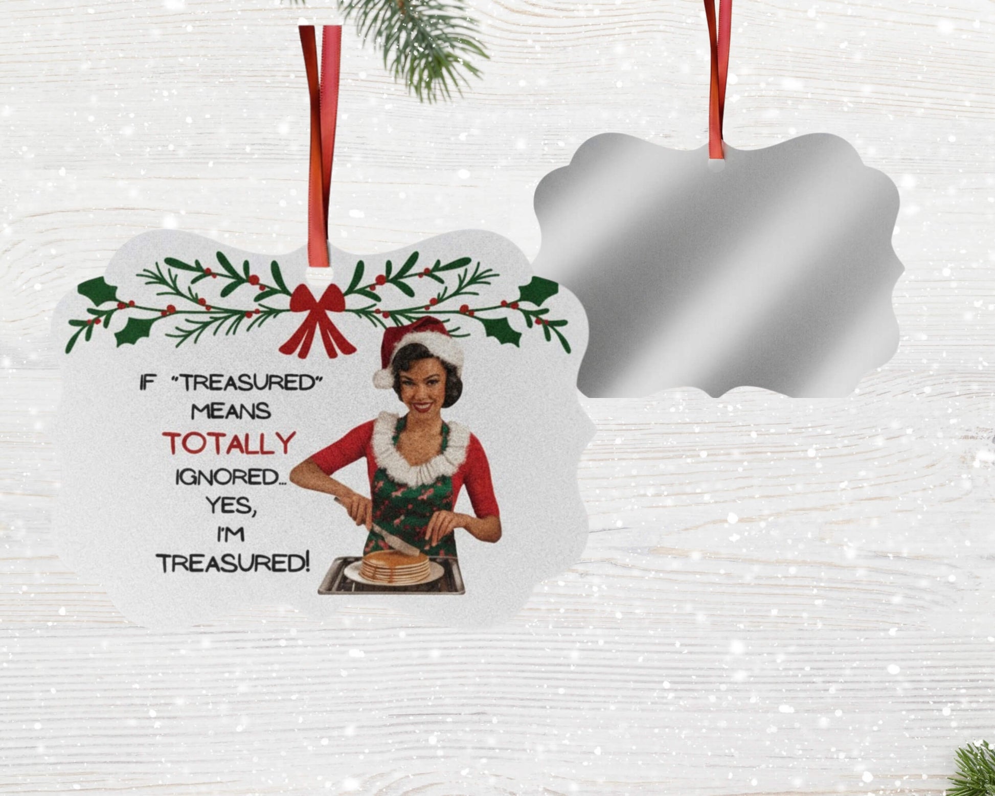 If “Treasured” Means Totally Ignored | Funny Adult Christmas Ornament | Snarky Holiday Gift | Sarcastic Housewives Club