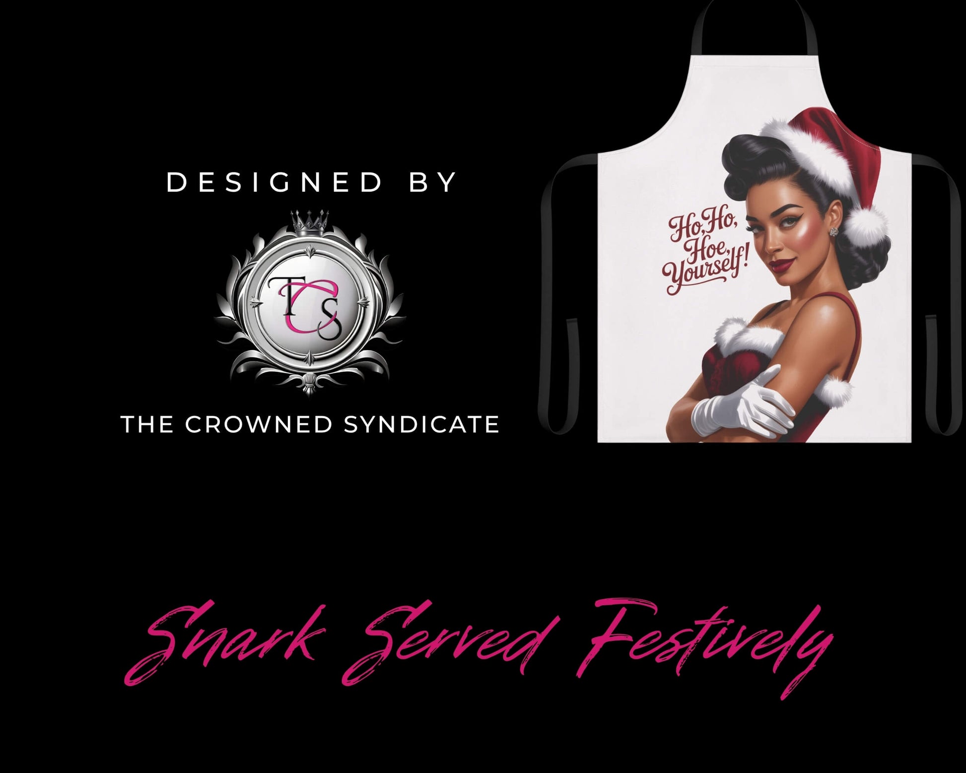 The Vintage Vixen “Ho Ho Hoe Yourself” Apron in white is your perfect blend of naughty and nice. Bold enough to handle kitchen chaos, chic enough to steal the holiday spotlight.