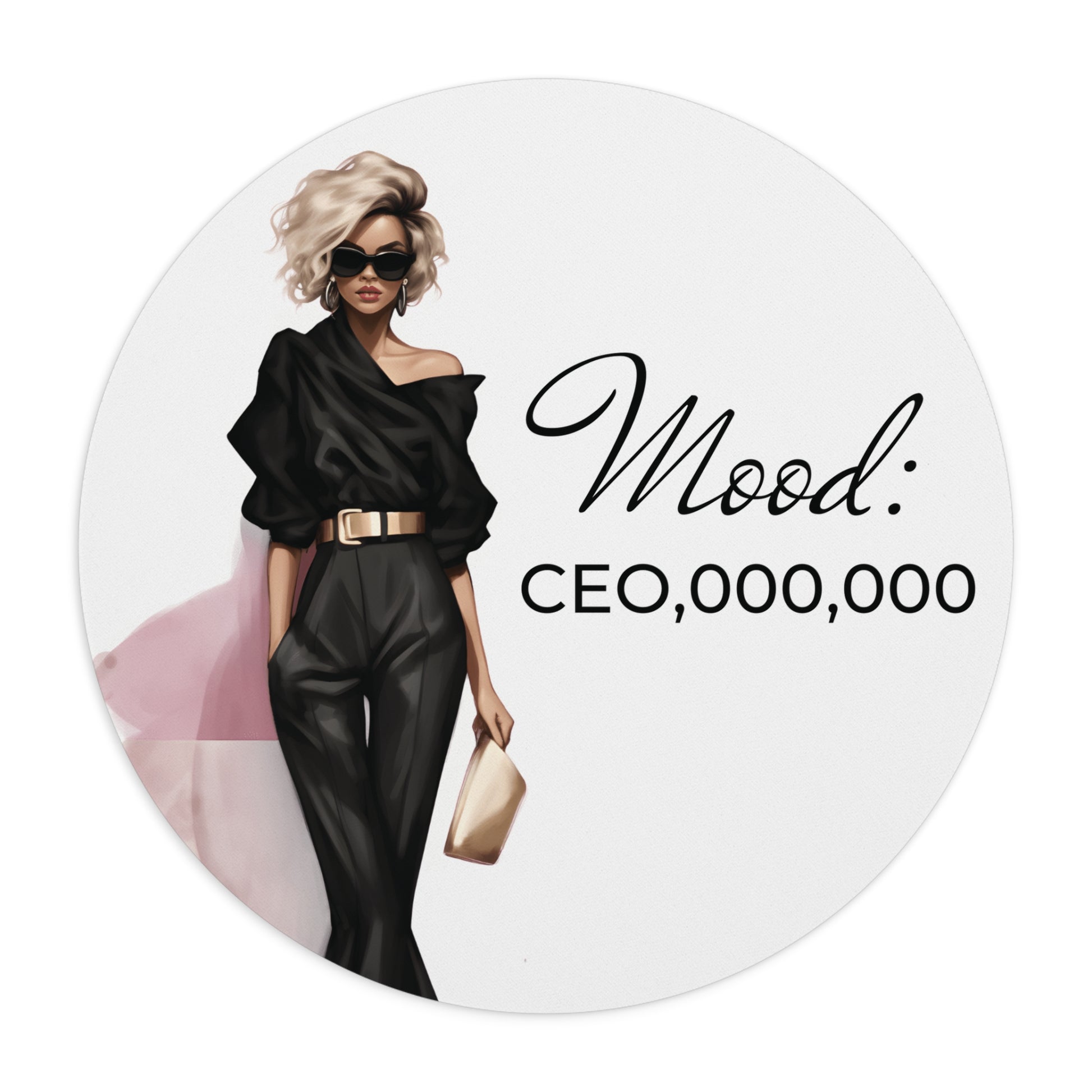 Elevate your workspace with this Mouse Pad featuring a 'Boss Lady Mood: CEO' design. Perfect for ambitious women who want to show off their leadership qualities. Ideal for Boss's Day, International Women's Day, or just for everyday inspiration. Product Features - Neoprene rubber pad for comfort and flexibility - Nonslip bottom for a secure grip on the desk - Available in round and rectangle shapes Care instructions - Use warm water and dish soap to clean spots off your pad. It's not necessary to soak the whole pad. For hard-to-clean spots, use a soft-bristled brush.