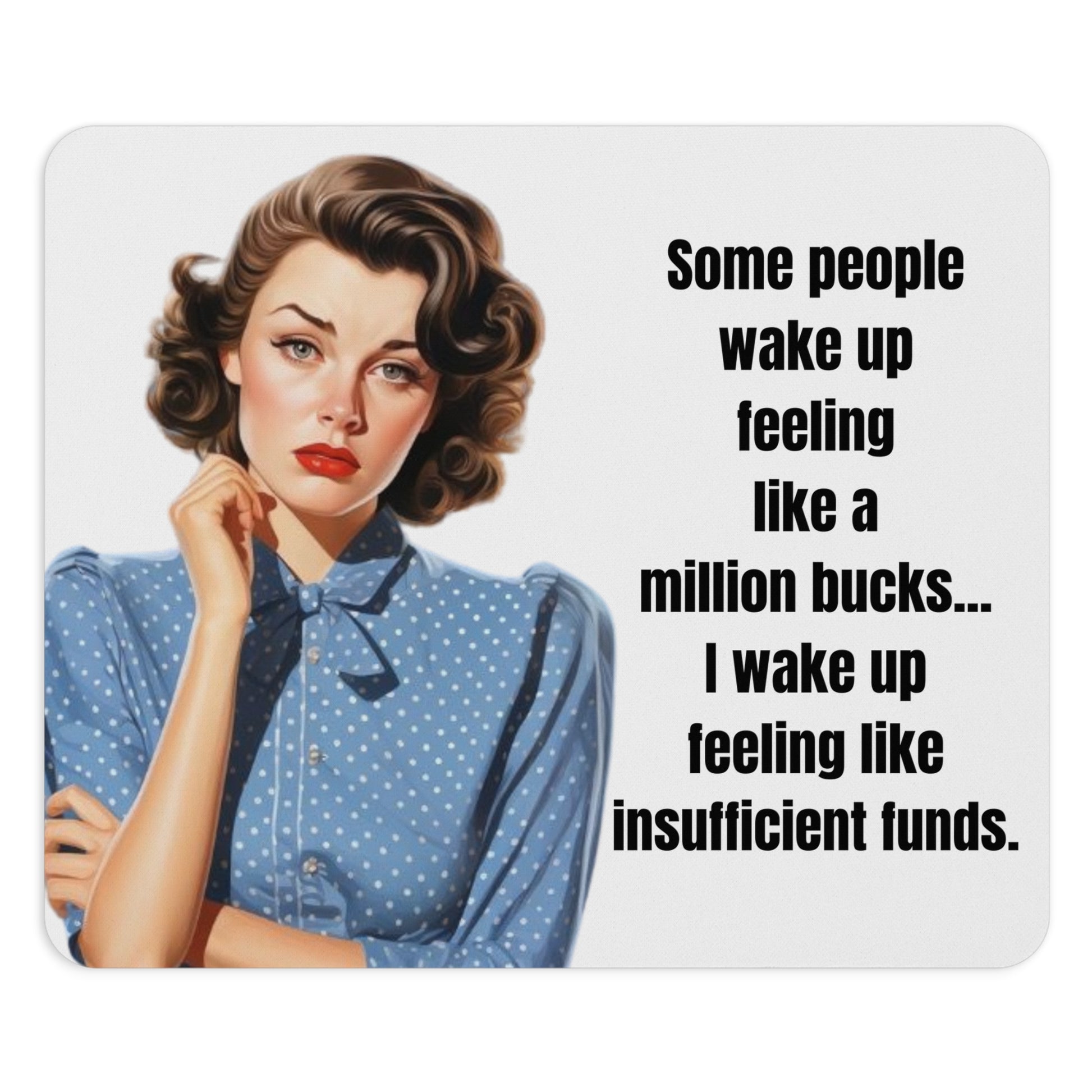 Mouse Pad, Funny Office Desk Mat - Feeling Like Insufficient Funds Humor, Sarcastic, Coworker Gift, Work From Home, Office Decor, Computer