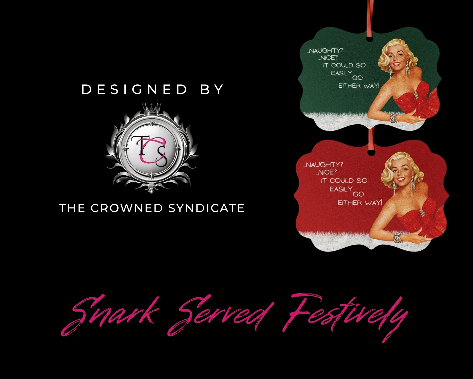 Naughty or Nice? Who Cares. | Snarky Christmas Ornament | Bold AF Holiday Decor | Funny Retro-Inspired Ornament