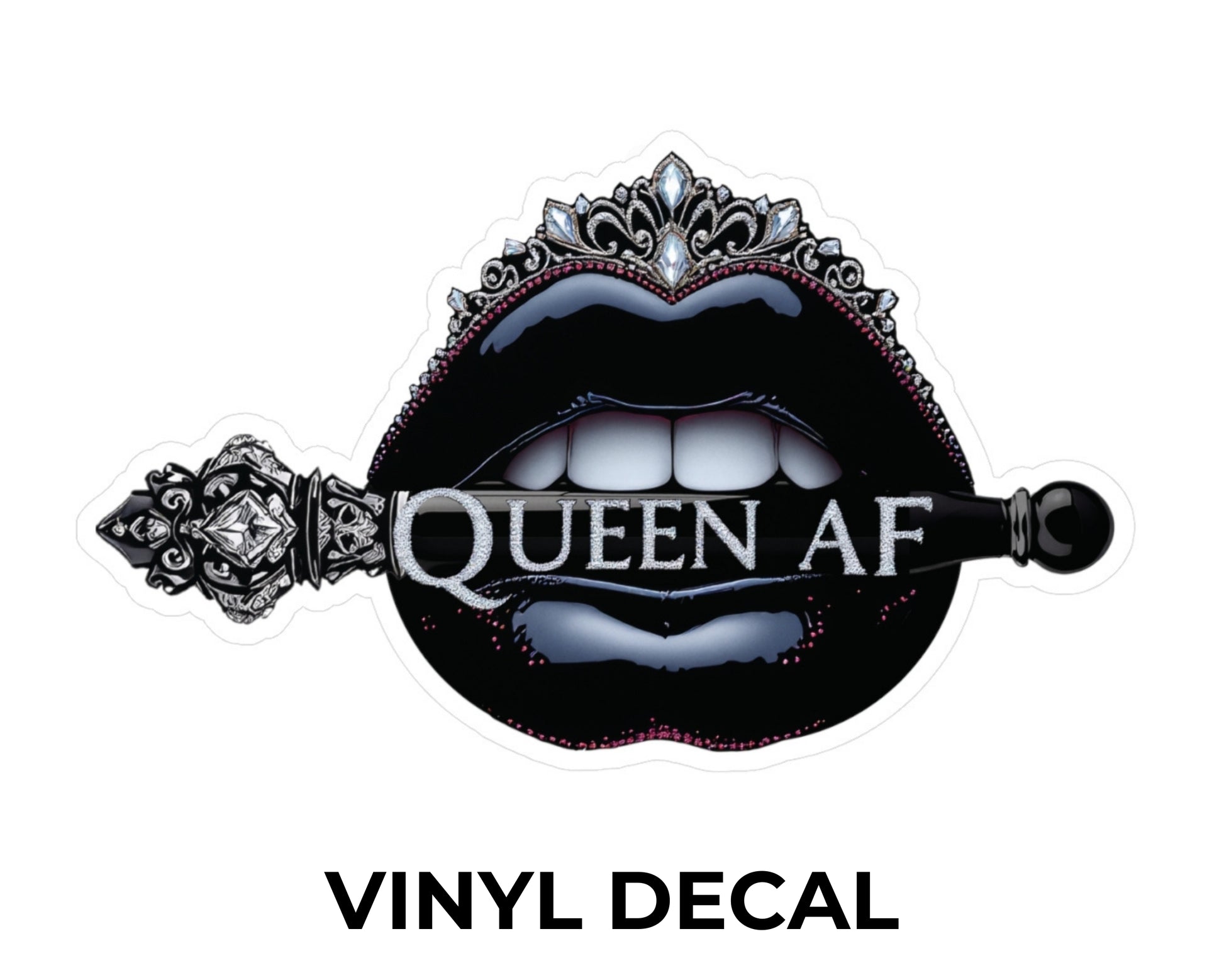 This "Queen AF" vinyl decal features black glossy lips gripping a royal scepter—because royalty doesn’t whisper. Perfect for anyone who wants to make a statement with attitude, this one brings main-character energy to laptops, cars, and beyond.