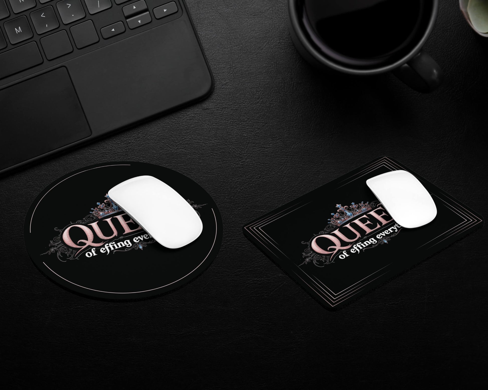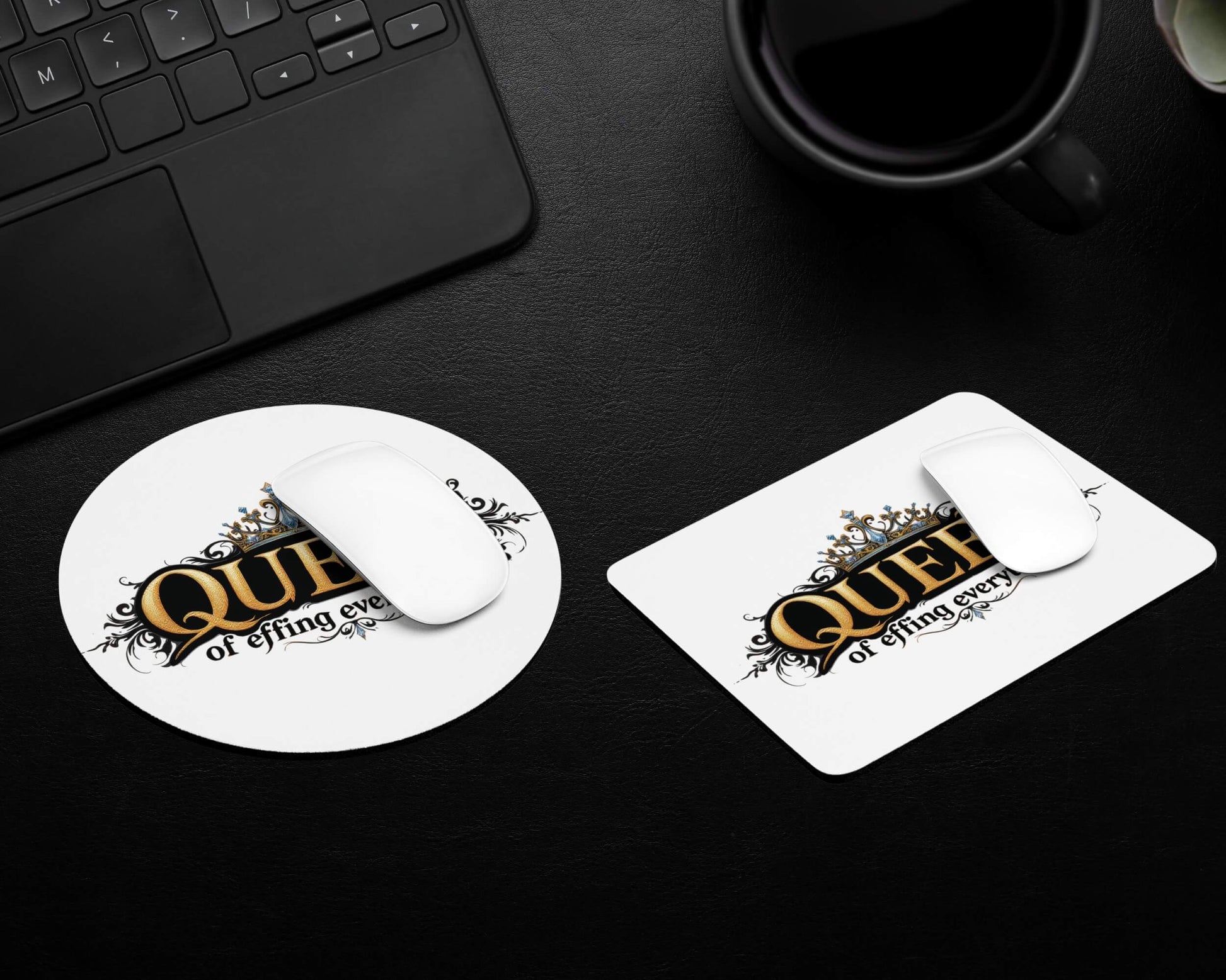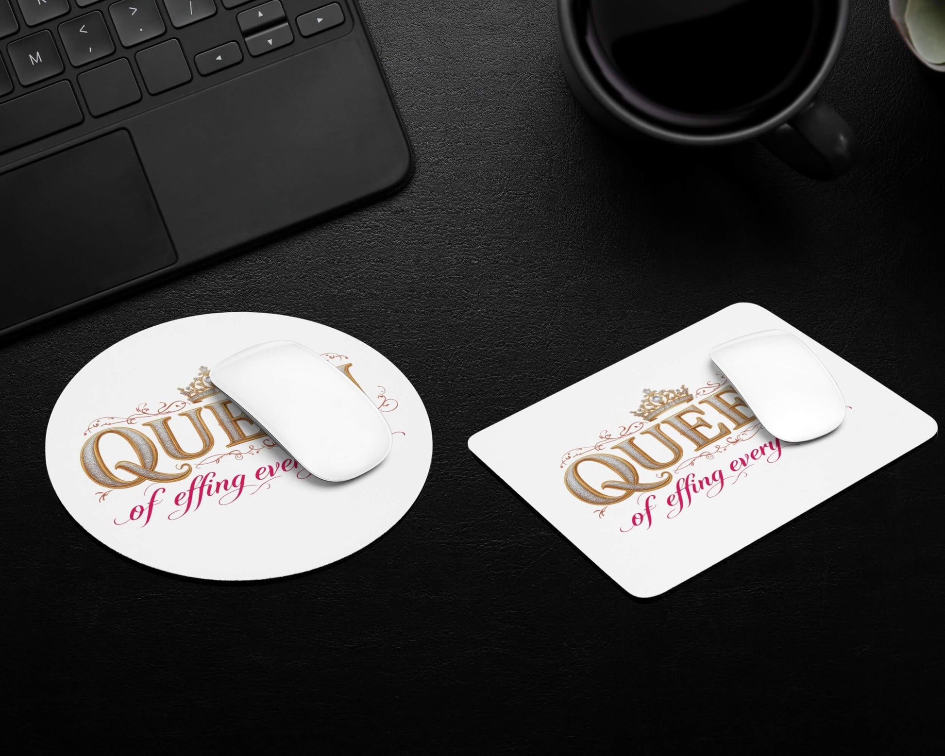 The Queen of Effing Everything Mouse Pad is a royal decree in desk form—because being in charge should come with custom options.