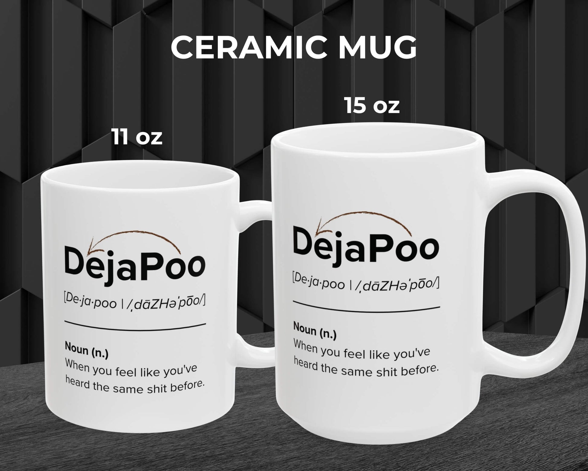 You know the feeling. You're halfway through a conversation and boom—there it is again. The same recycled BS. Enter the DejaPoo Mug, your white ceramic eye-roll in drinkware form.