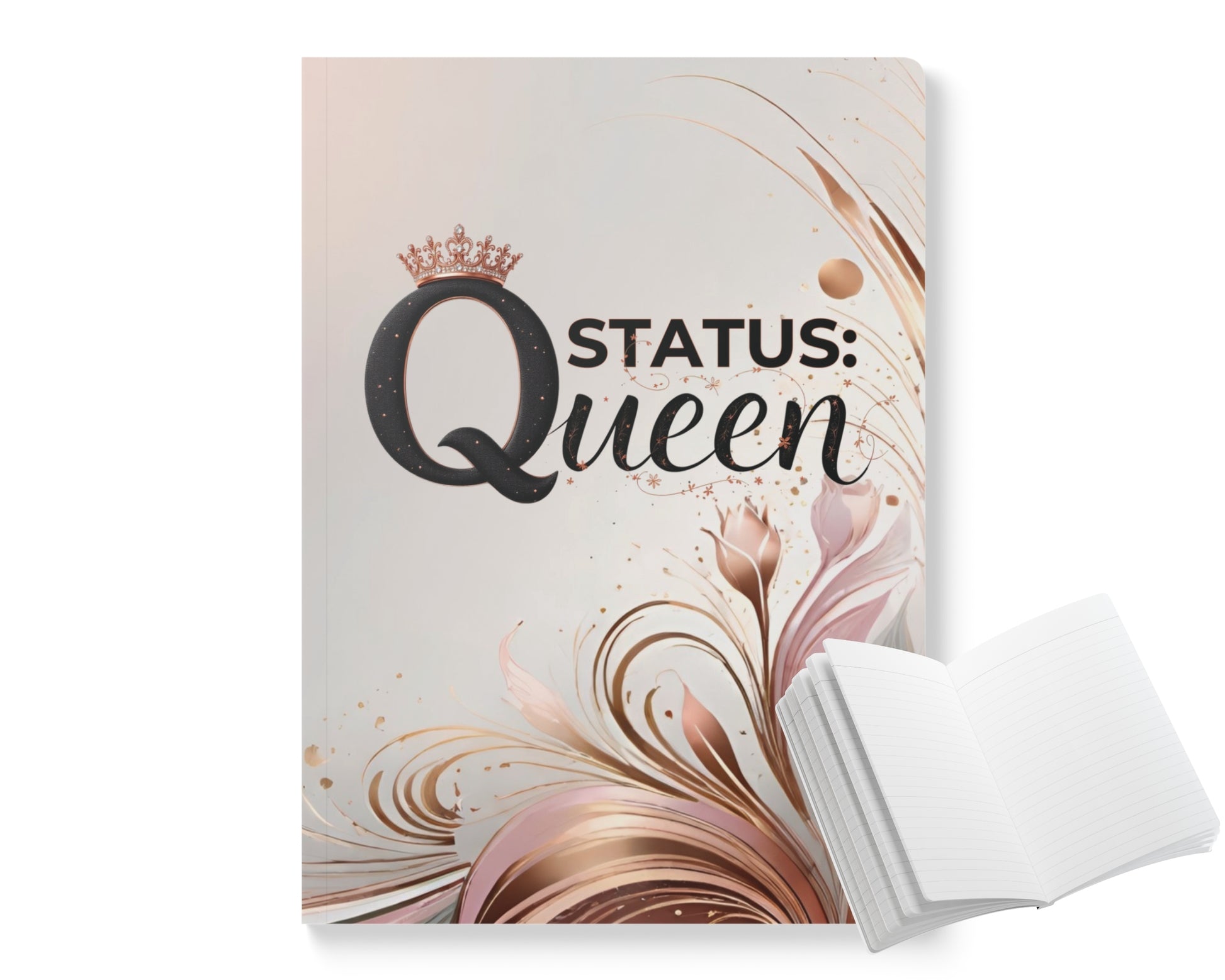 The Status: Queen journal isn’t just a notebook—it’s a declaration. With a soft satin-touch cover, luxe rose gold crown, and bold typography, this piece is designed to remind you: power lives in your pen.