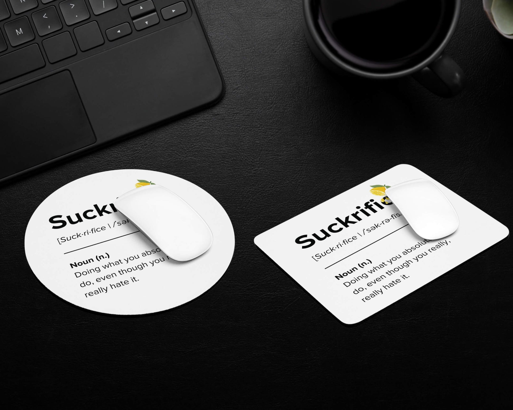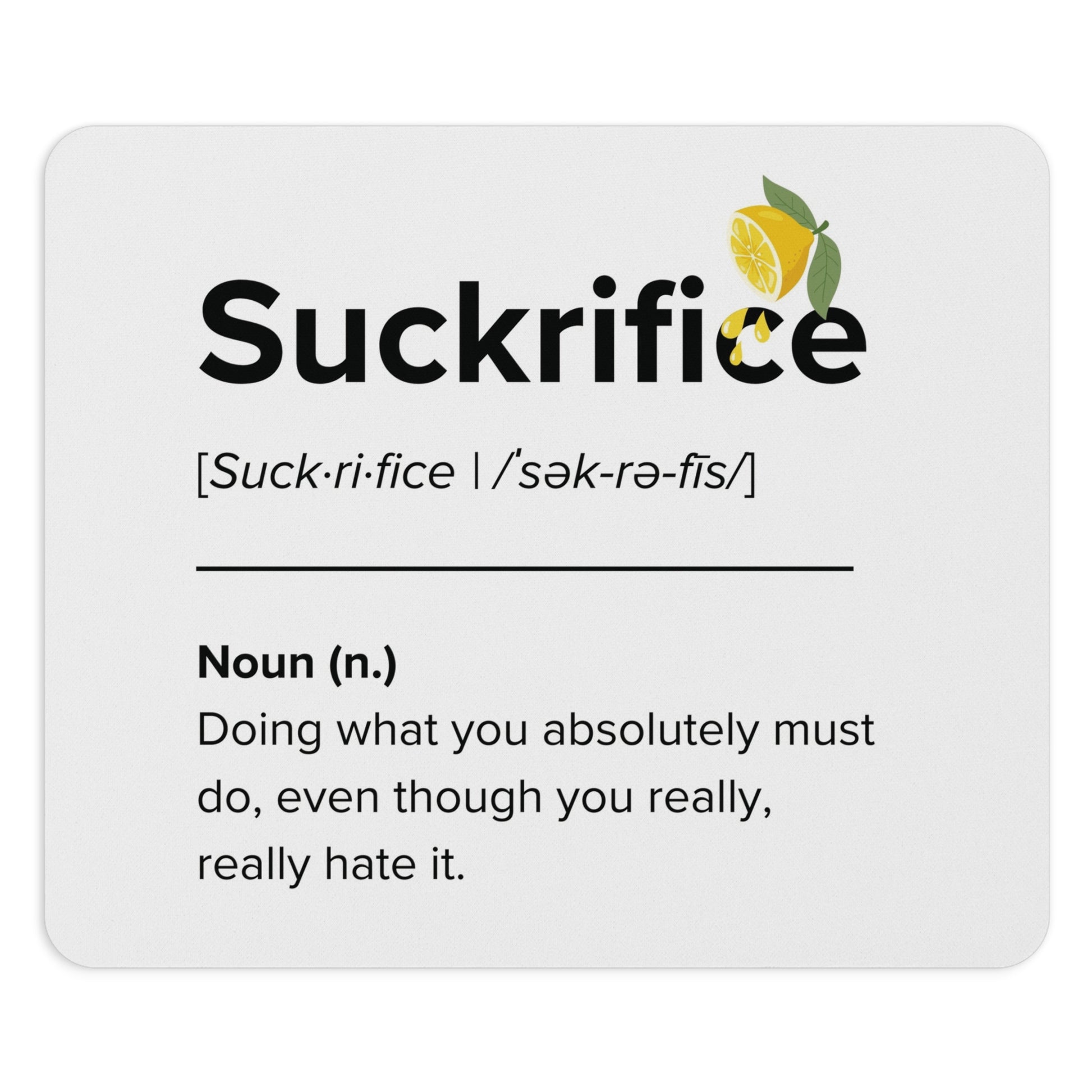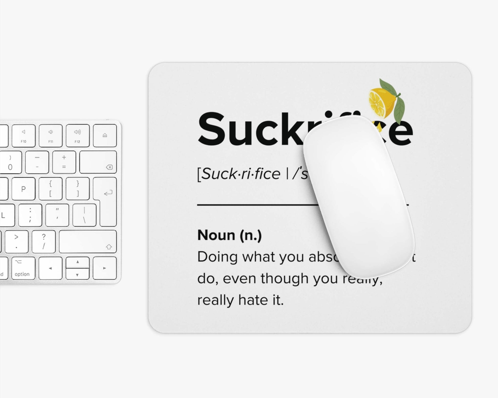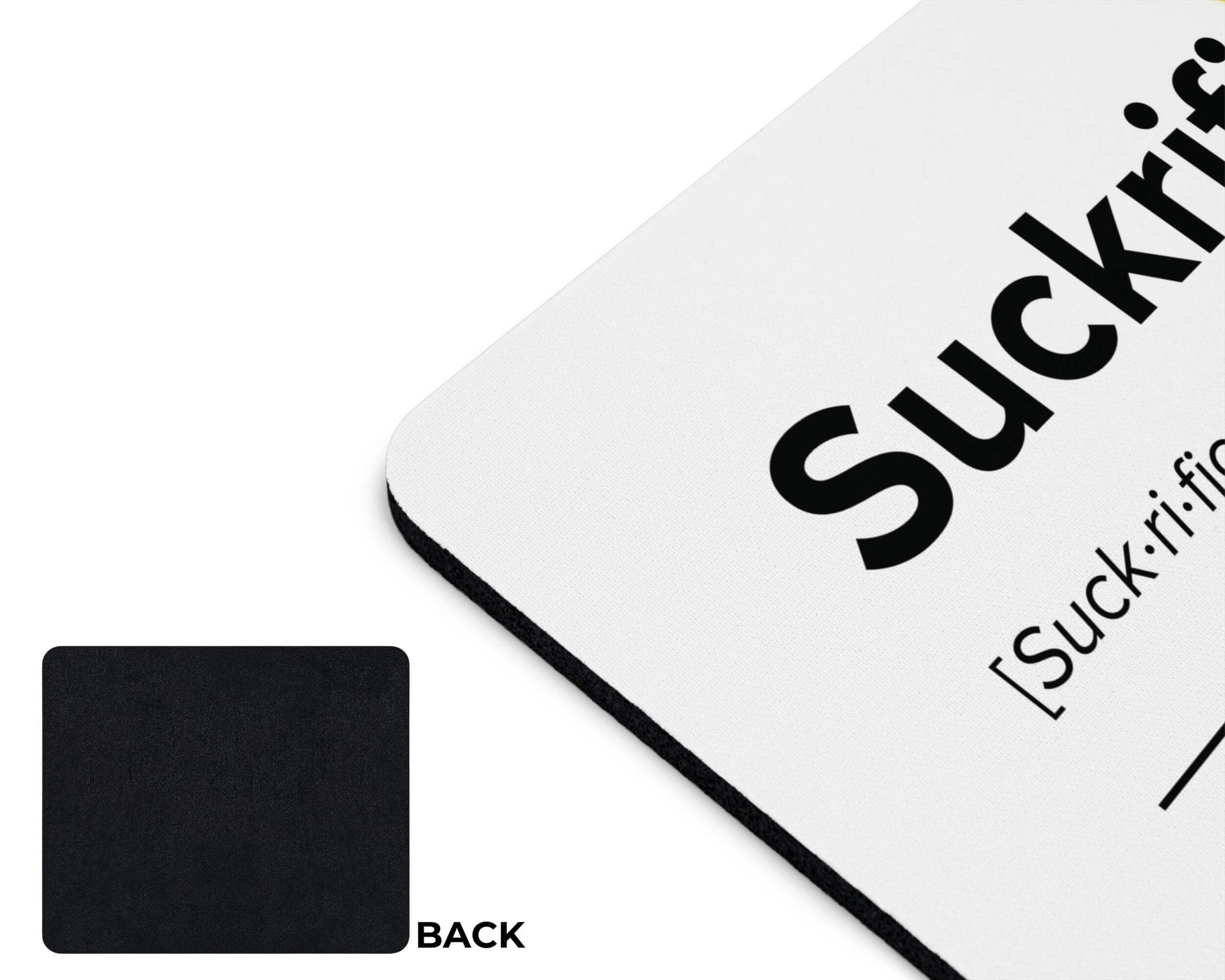The Suckrifice Mouse Pad is your daily reminder that showing up deserves a damn medal. Whether you’re grinding through spreadsheets, surviving meetings that should’ve been emails, or just counting down to happy hour—this pad’s got your back (and your mouse).