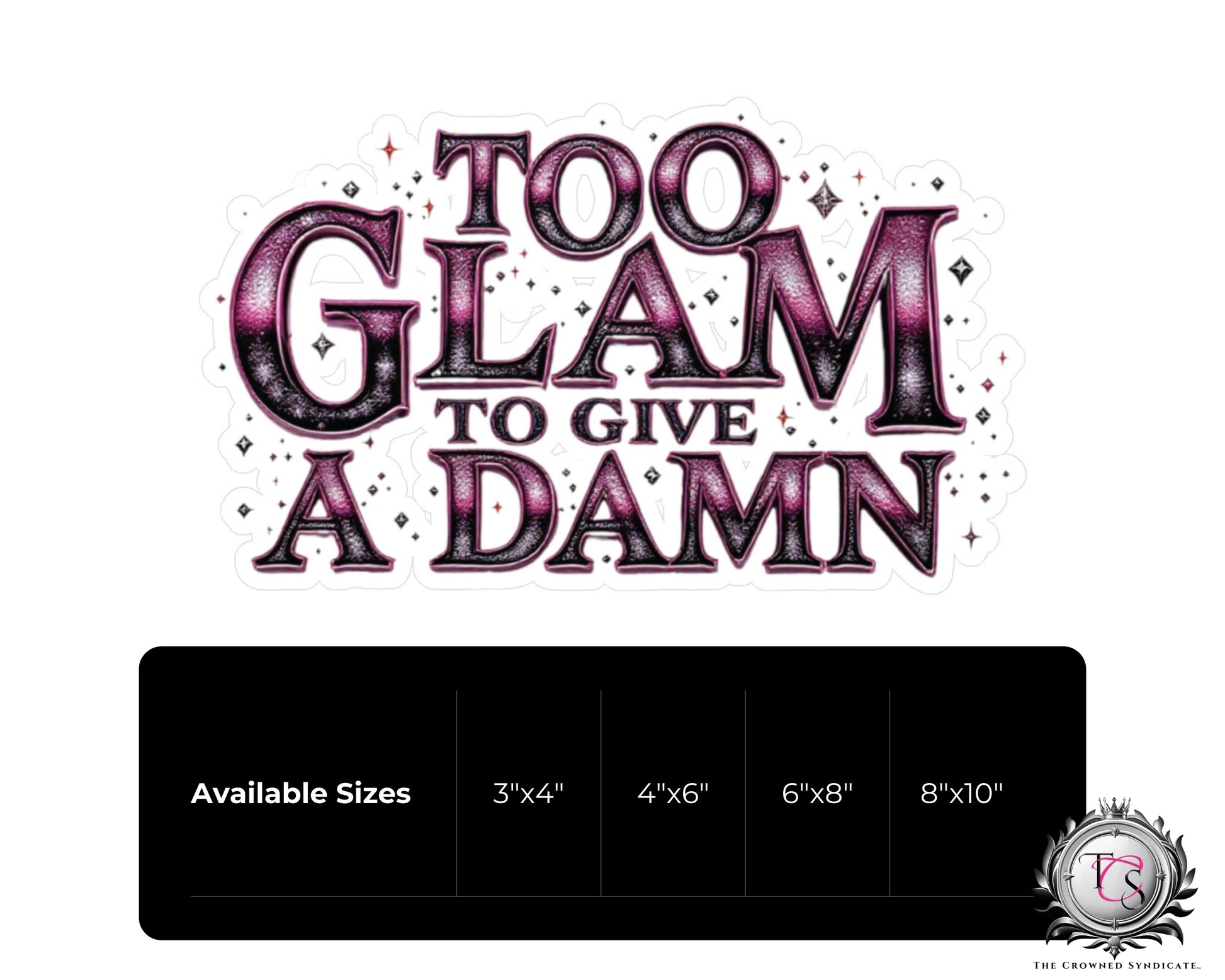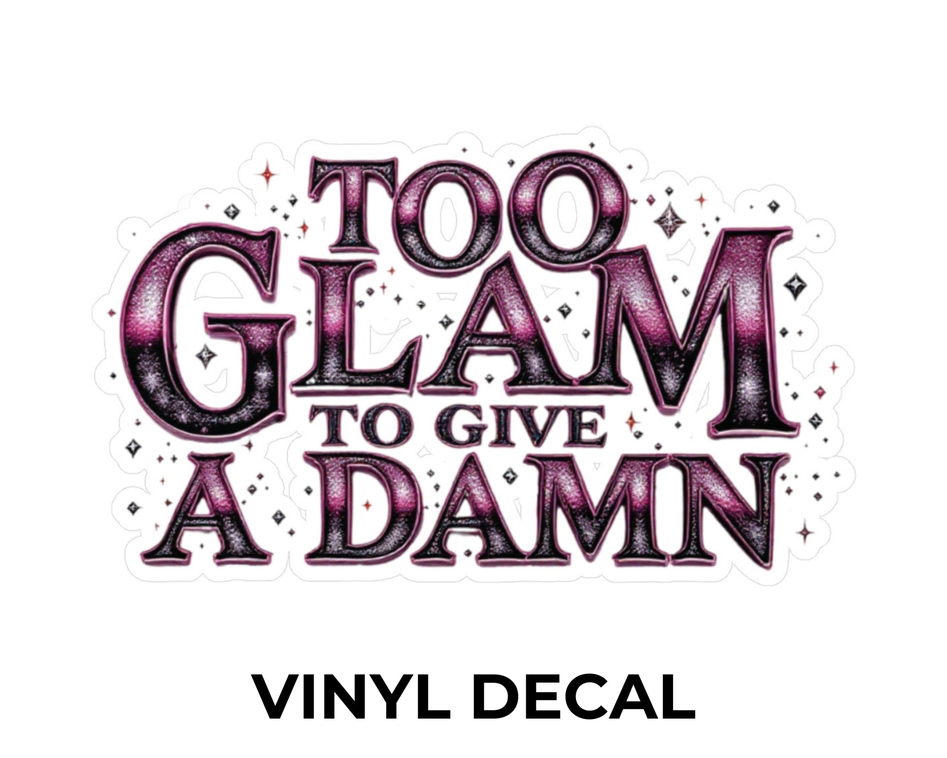 The "Too Glam to Give a Damn" decal brings high-gloss attitude to your favorite spaces. Whether you're making your mirror sassier or dressing up your dashboard, this sticker serves unapologetic glam in all caps.